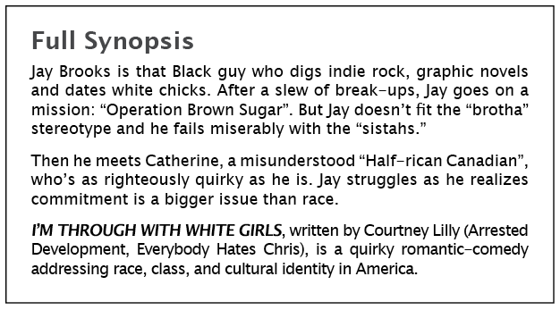 An international favorite written by Courtney Lilly (Arrested Development, Everybody Hates Chris, My Boys), I'M THROUGH WITH WHITE GIRLS is a quirky romantic-comedy addressing race, class, and cultural identity in America. |